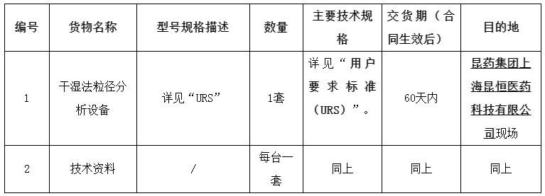 尊龙凯时集团股份有限公司就2021年尊龙凯时集团股份有限公司上海昆恒医药科技有限公司干湿法粒径分析仪设备采购(招标编号:SHKH—SBGC—2021—X01)对外进行公开招标,按照“公开、公平、公正、科学、择优”的原则选择中标人,欢迎符合条件的投标人持相关资料前来报名,现就有关事项公告如下: