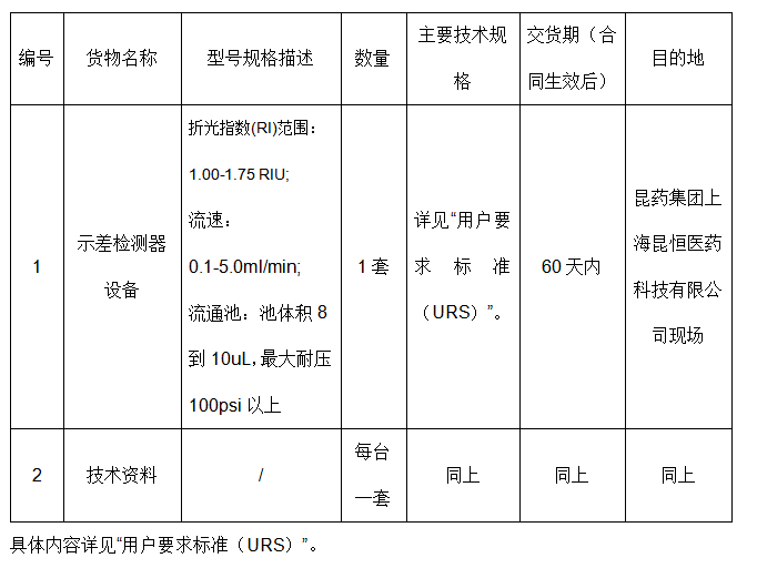 2021年尊龙凯时集团上海昆恒医药科技有限公司示差检测器设备采购招标公告
