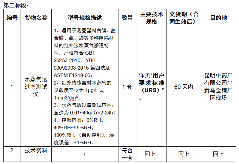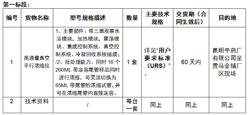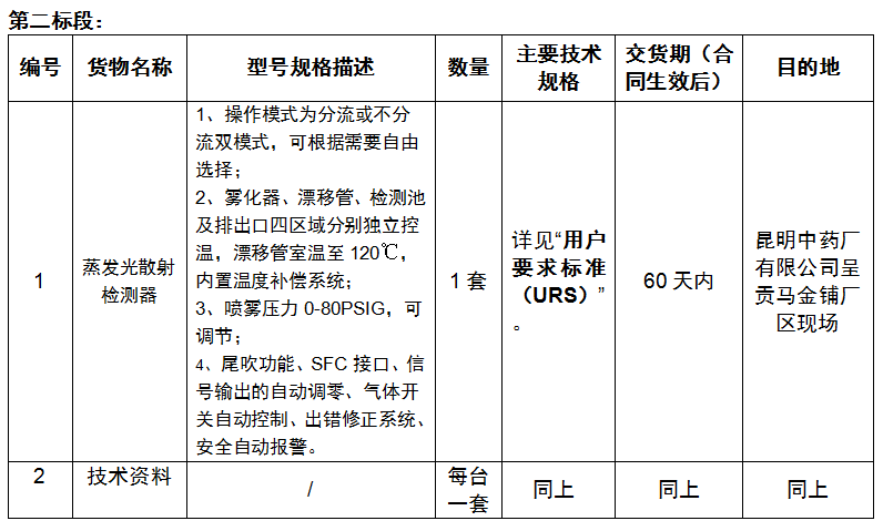 2021年昆明中药厂有限公司质量检验设备采购项目招标公告